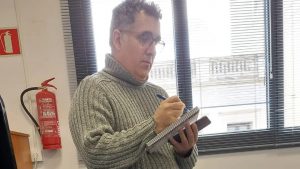 Cuando yo era estudiante de 2º de Periodismo, tuve la suerte de entrevistarle en su faceta más humana, como padre. La verdad es que le entrevisté sin recordar su nombre. Estábamos el fotógrafo Miguel López y yo, como redactor del periódico Nou Barris 9, cubriendo una maratón de teatro amateur que se celebraba en el barrio del Congrès de Barcelona.